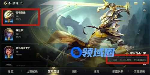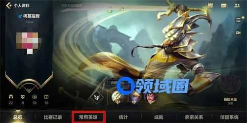 进入之后可以看到个人信息,点击下方的常用英雄。
