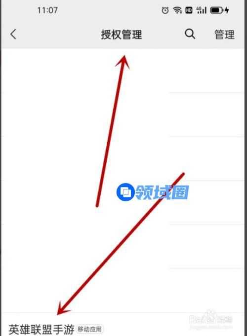 在授权管理中找到英雄联盟手游,点击进去