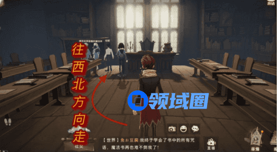 我们需要到城堡上空,进入城堡主楼,进入魔法使教室,在最前方的教室讲台旁边,找到光点点击即可。