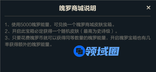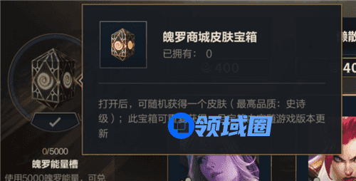 真正能够获得皮肤的是左边的魄罗商城皮肤宝箱,前提是你需要积累5000能量值来兑换,5000能量值可以通过魄罗宝箱开启获得,也可以花费魄罗币来获取。