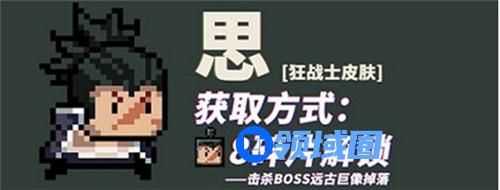 思狂战士皮肤,获得方法是八个碎片解锁,碎片的获得方法击杀boss远古巨像掉落。