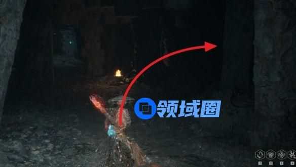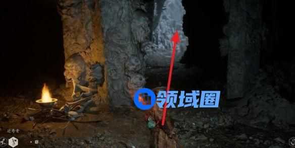 3、在洞口会看到有个火盆,走火盆右侧进入洞口。