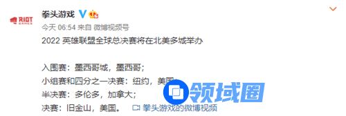 2022英雄联盟全球总决赛将在北美地区多个城市举办。