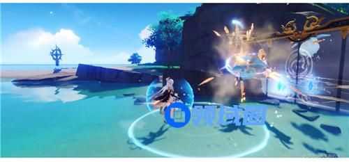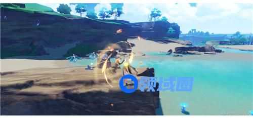 沿着海滩地点① → 地点②,地点②会冒出2个水飘浮灵。