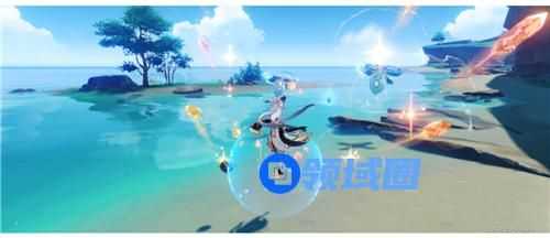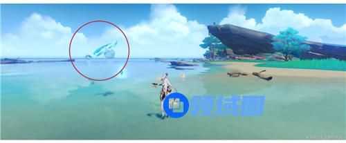 海祇岛「7天神像」→ 地点②, 瀑布底部,「雷霆探针」位置,3个水飘浮灵。