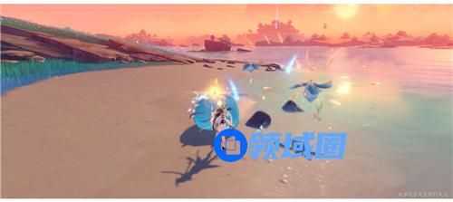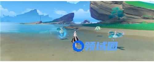 地点⑤,走到沙滩会出现2个水飘浮灵。