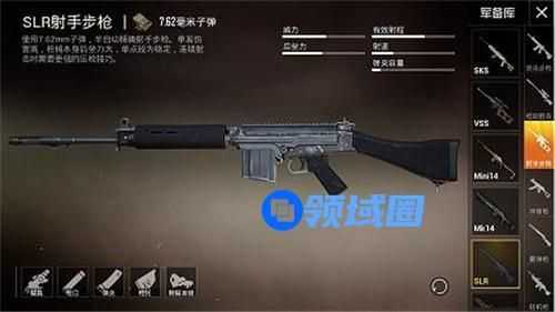 SLR:威力 58,射速 46,稳定性 40,射程 64