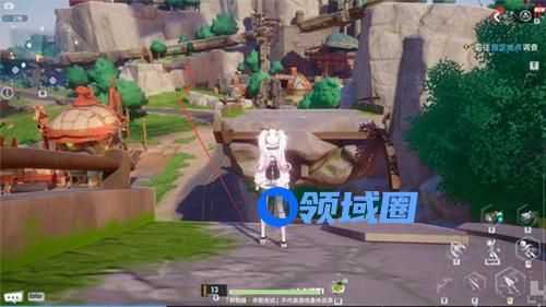 传送到“折跃门-班吉斯农场”,沿着下图所示的箭头方向往山下走,来到西北方向的断桥处,用喷气背包飞上桥就能看到。