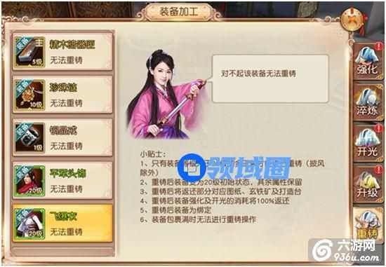 对大于20级的金玉装(披风除外)进行重铸,可返还相应的升级材料
