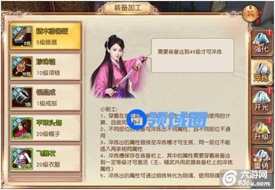 对穿戴在身上的45及以上装备进行淬炼,根据不同装备淬炼出不同属性来提升玩家实力