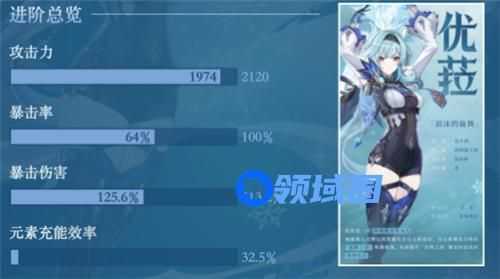 总而言之,优菈的暴击率最少也要堆到64%以上才行,暴击率太低的话很容易影响输出的稳定性,毕竟一半的伤害来自于大招炸的那一下,万一没炸伤害就很低了。