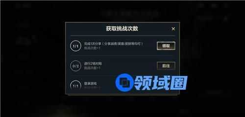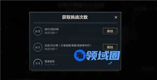 小编这里就是分享的皮肤,大家可以看到这里的任务已经完成了,可以领取挑战次数了。