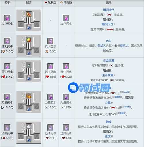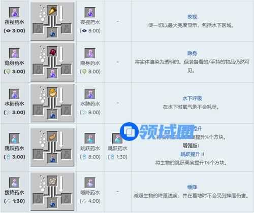 我的世界药水合成表图片