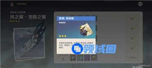 首先要想制作放热瓶需要先获得图纸,也就是在雪山忍冬树那里,将忍冬树供奉至4级以后,就可以获得【放热瓶图纸】。