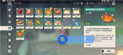 方法1:吃食物,也就是【稠汁蔬菜炖肉】这个食物,可以让队伍的所有角色积累严寒的速度降低,食物品质越高,降低效果越好,这个是减缓严寒速度的方法,在雪山里面很好用,可以大多数情况下不用去找火堆或者相关建筑。