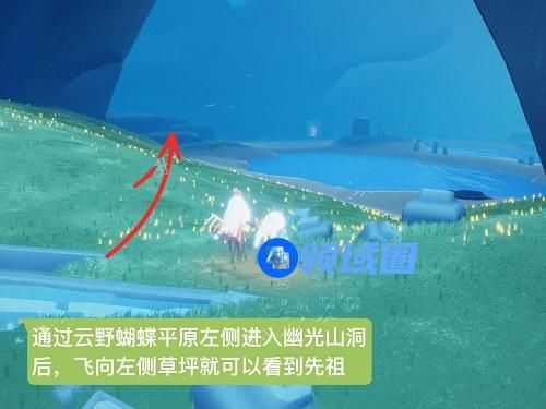 玩家通过云野蝴蝶平原,从左侧进入幽光山洞后,飞向左侧草坪就可以看到先祖了。