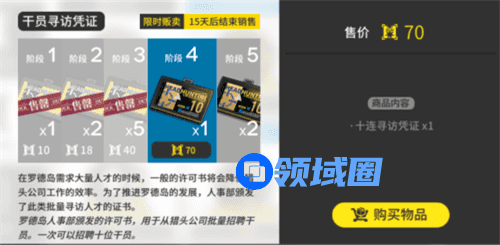 每一次能购买的寻访凭证数量是递增的,分别为1、2、5、10、20,购完后需要等待黄票商店刷新,觉得资源不够用的玩家可以在bu3g,cn官网里玩无限资源版升级需要的道具资源也可以自由获取。