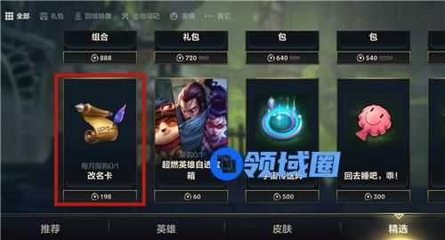 第一步:首先来到【商城】-【精选】,花费198点券购买一张改名卡。(PS:每月限购一张。)