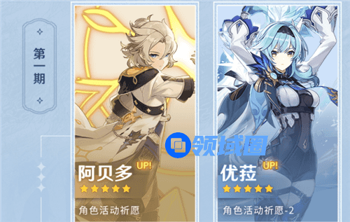 言归正传,这个就是双up的含义,也就是一下上线两个角色up池,这个情况是第一次出现,就是阿贝多和优菈角色祈愿会同时出。
