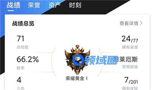 在此页面可以查看自己的战绩、荣誉、资产和时刻,以及英雄和皮肤的收集度,功能还算是相当齐全的。