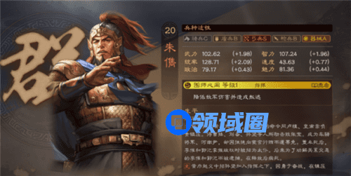 sp朱儁四维属性还是比较出色,整体面板媲美姜维,因此作为输出武将来讲是没有任何问题的。