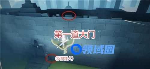 第一道大门有两个隐藏入口:第一处是烛台右边角落,这块草坪是个幻影,走到里面会自动掉到地图外(仅限矮人)。紧接着向前方飞,看到先祖就代表进入了花园,飞出来即可。第二处在入口的左侧墙面。虽然上面是风墙,但有一块石头例外,阿瑶已经把位置标在图中,玩家可以对照一下。