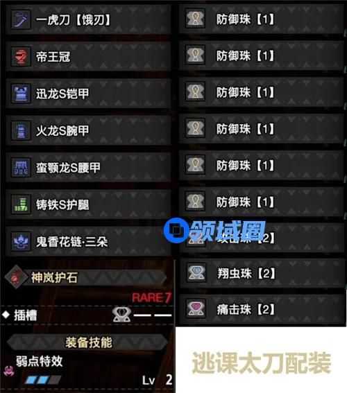 注:如果实在没有痛2孔2的护石,可以考虑用痛1孔2的,或者痛2无孔的,又或者痛风的,然后将攻击珠或翔虫珠换成痛击珠。