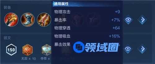 提供高额的暴击率和暴击效果加成,并且也有16%的吸血效果,前中期续航无碍。
