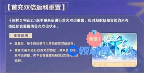 原神双倍首充给的原石要比正常情况下充值要多得多,也算是一种比较划算的充值福利,那么春节UP那么多人权角色,会不会重置各个充值档位的双倍原石呢?本次光耀菌就解答这个问题,快来了解一番吧!