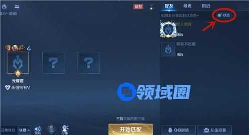首先来到多人匹配/排位的组队界面,点击右上角的【状态】按钮。