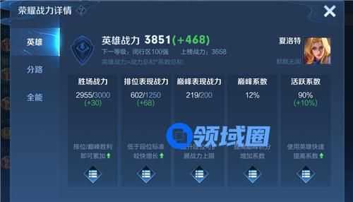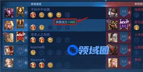 来到表现界面后,就能看到自己的英雄战力涨了多少,如果你想查看详细的表现分变化,点击这个战力数值。