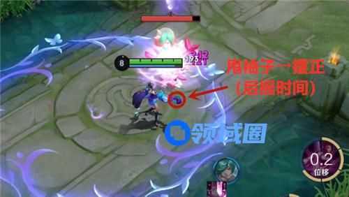 位移过去之后,要保持移动键往一个方向拖动并且不松开,此时我们会发现貂蝉的二技能后摇消失了,即:没有甩袖子的动作了。
