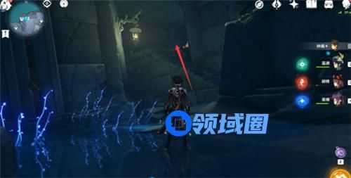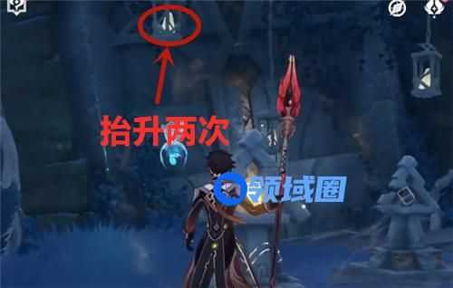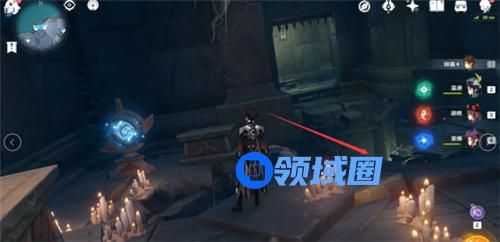 跳下悬崖就是会发现一处吊灯解密机关,我们需要攻击这3个三角机关,让吊灯抬升到合适的高度来开门。