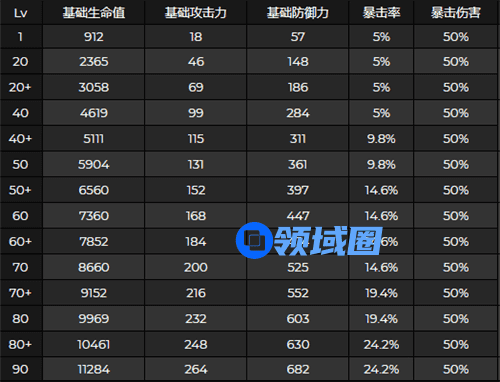 各等级突破详细数据: