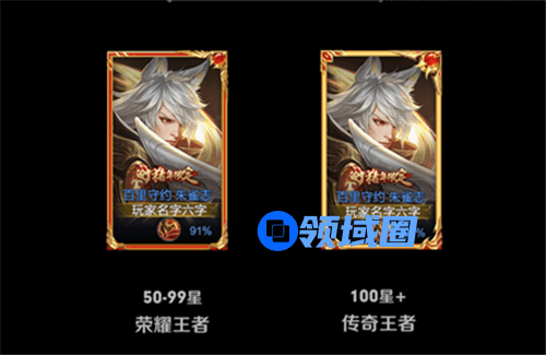 新增段位,目前王者荣耀的最高段位,边框的描边要更加精细,更加粗,右上角圆球更大,并且拥有镶边,边框除了四角均有金黄色镶边包裹,四角绘制更加惊喜,红金相交,顶尖王者气息十足。