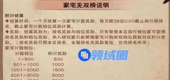 5、排行榜奖励:在家宅排行榜中排名靠前的玩家会获得额外的家宅积分奖励。