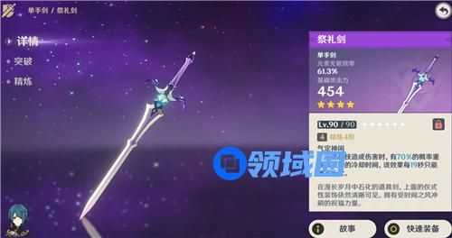 最最最推荐的一把四星武器,升级了以后很多角色都能用,尤其是行秋这个角色,祭礼剑可以说是专武。