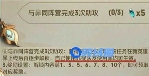 总而言之,与暃同阵营完成3次助攻的任务,就是要我们和暃这名英雄一起参加对局,拿到三个助攻后就能完成的任务,并不难。