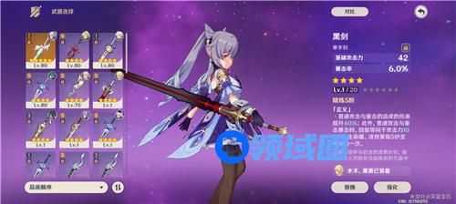 黑剑是大月卡武器,大家如果有兴趣可以换一把,没有也无所谓,这个是提升重击的伤害,主属性还有暴击加成,很契合刻晴。