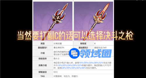决斗枪可能用起来要难受一点,会断大招,所以说这个决斗枪来用基本上是希望云堇打一个副C,但是并不是说不能选择决斗枪。