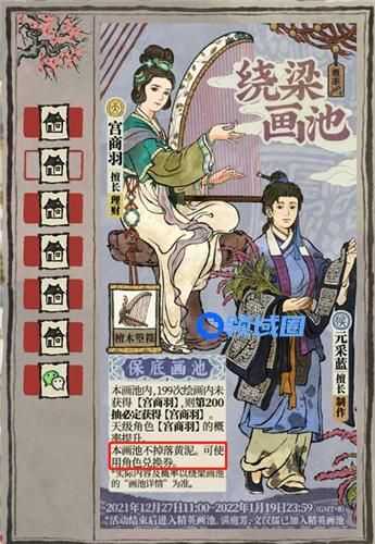 在江南百景图中画池就是其他游戏的抽卡活动了,在游戏中抽卡不仅可以获得一些人物,还可以获得珍宝,并且有些人物是只能够通过画池获得珍宝。