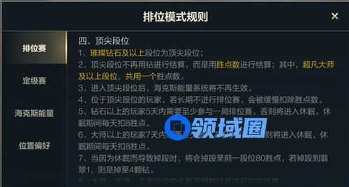 休眠掉段机制只是针对顶尖排位的,顶尖排位即钻石段位及以上的段位,只有顶尖段位才会有掉段休眠机制。