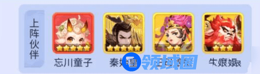 辅助伙伴(5星忘川童子、王母娘娘、姜子牙)可着重增益牛魔王和秦始皇。