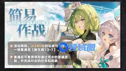 活动期间,280级的玩家可将主线—键直通至【新生籍13-1】,直通后可直接领取通过关卡的首通奖励,并完成对应的任务和成就。