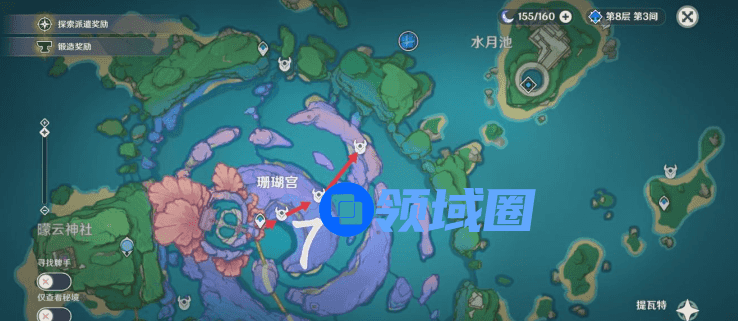 三、渊下宫地区点位3(10只):传送到「八衢彦之地」锚点,沿着地上小路前进。