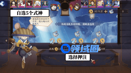 2、流程:选式神、选押注、是否提升难度、战斗后结算奖励