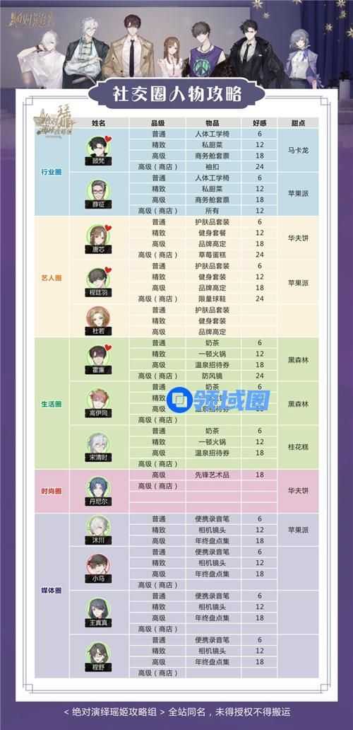 绝对演绎礼物是非常重要的玩法,最近很多玩家都想攻略人物,给他赠送礼物,但是不知道这些角色都喜欢什么,毕竟每一个角色的性格喜好都有所不同,那么今天小编就给大家带来礼物赠送图,还不知道喜欢什么的赶紧来看看吧。