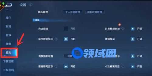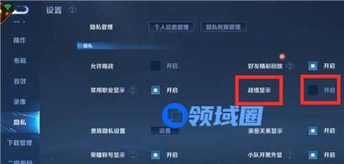 接着在隐私这里找到【战绩显示】,这个就是大家要用到的隐藏战绩功能,大家给他勾选去掉,即可成功的隐藏自己的战绩了,如下图: