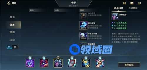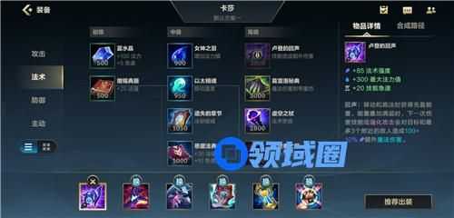 第三件推荐大家选择【女妖面纱】,无限火力很容易吃技能,女妖面纱可以帮助你抵挡一次致命技能,还是不错的选择。