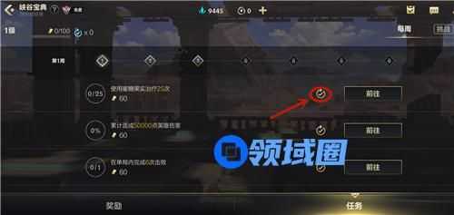 首先任务卡是用来直接完成一个峡谷宝典的每周任务的,我们来到峡谷宝典的任务界面后,点击下图所示的√图标。
